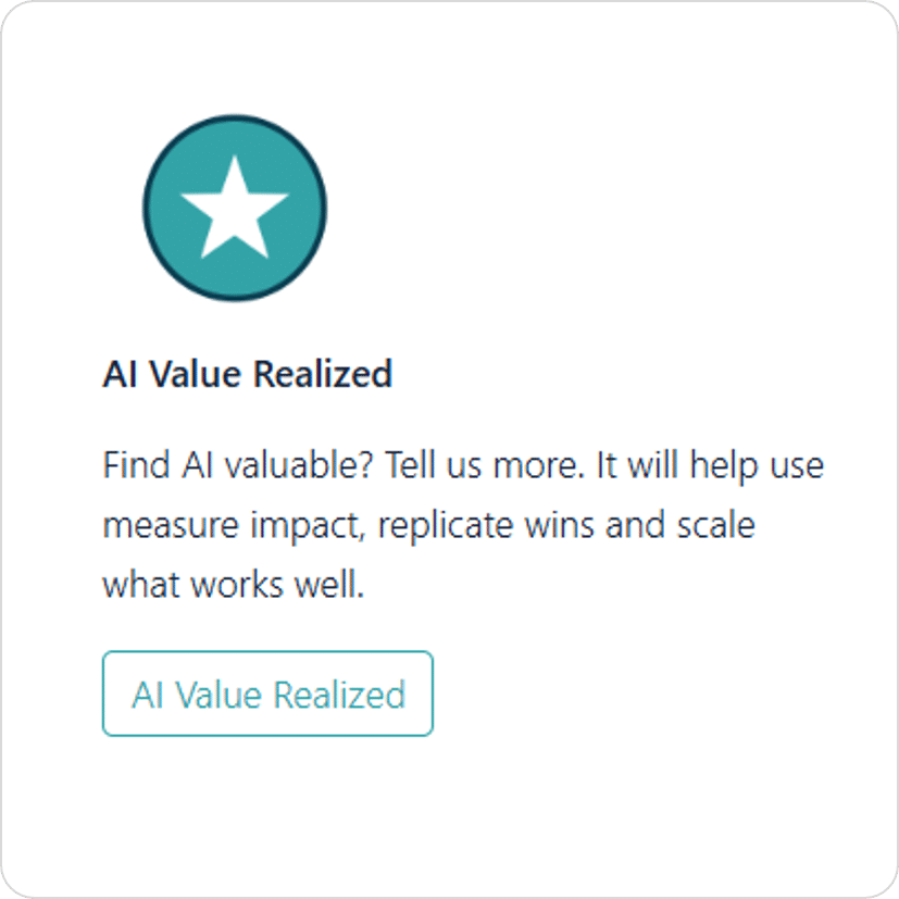 Crowdsource data about every AI implementation to identify where potential value exists before it’s realized or measurable. This early visibility helps spot emerging opportunities and direct focus toward the high-potential initiatives.