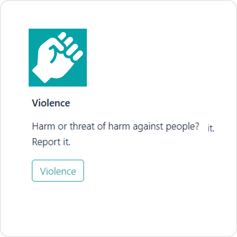 Crowdsource data about harm or threats of harm against people. Even small fights or threats can signal rising tension. Early detection helps prevent escalation, retaliation, and protect lives before violence spreads.